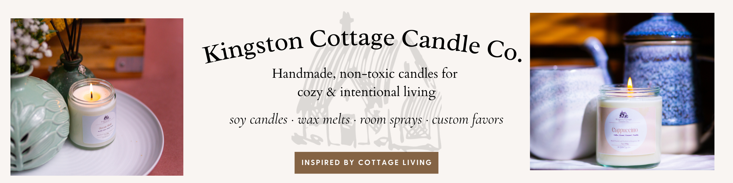 Welcome to Kingston Cottage Candle Co., where we craft nontoxic, handmade candles, wax melts, and room sprays with love and care. Founded in August 2023, our passion is to bring the warmth and charm of cottage living into your home.