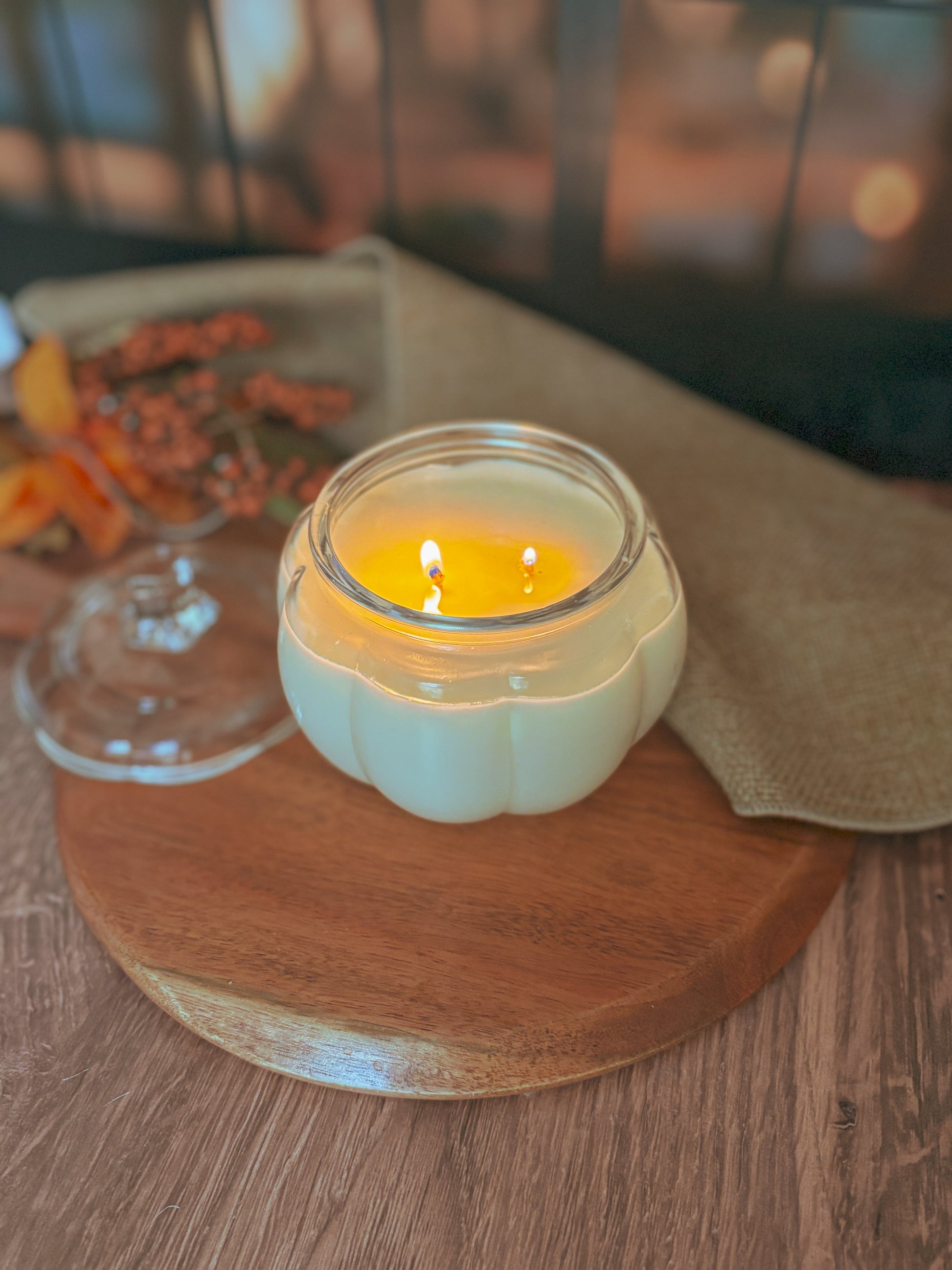 When the candle is gone, wash out the jar and you’ve got a timeless glass pumpkin you can enjoy for years, perfect for filling with candy, using in your fall displays, or simply setting out as a piece of cozy décor.